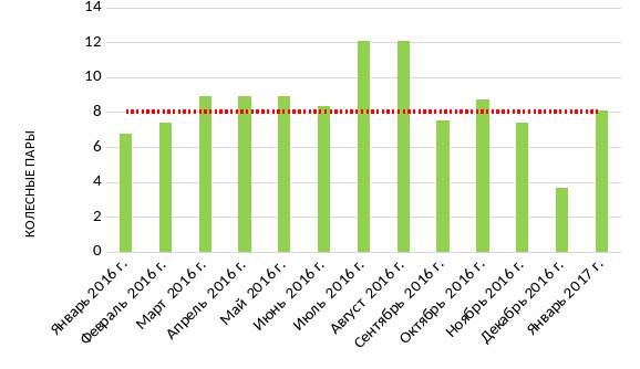 Во время преддипломной практики, анализируя программу среднего ремонта участка за 2016 год, было выявлено среднее количество отремонтированных колесных пар в день с помощью диаграммы представленной на рисунке 3.15.