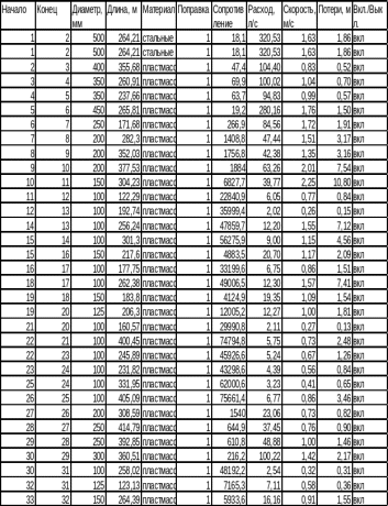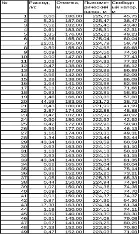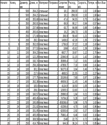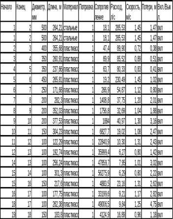 Таблица 2.4 – Результаты расчета сети на час максимального водопотребления города (сведения по участкам).
