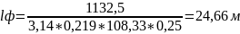 Необходимая длина фильтров скважин при расчетном дебите каждой 1132,5 м3/сут, определяется по формуле