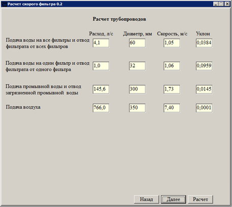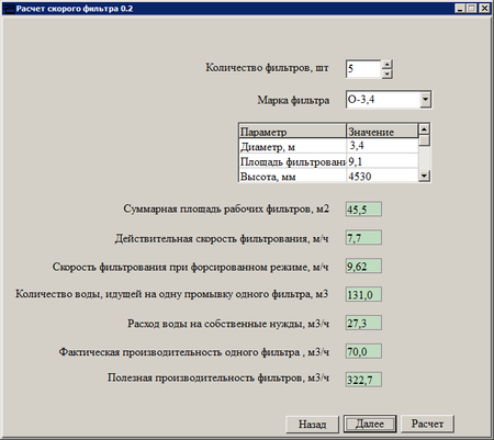 - расчетная скорость фильтрования при нормальном режиме, 7 м/ч;