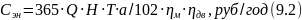Годовая стоимость электроэнергии для насосных агрегатов определяется по формуле