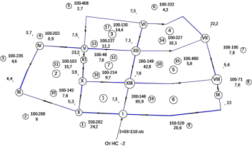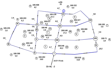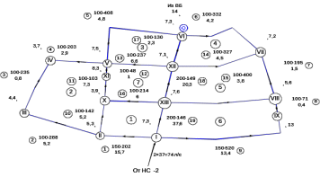 Рисунок 8 - Окончательная расчетная схема сети на час максимального водопотребления