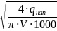 где V – скорость подачи воды в трубопроводе, 1 м/с.