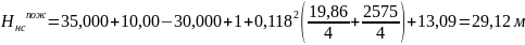 При подаче одновременно пожарного и хозяйственно-питьевого расходов расчетный напор определяется по формуле