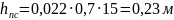 – высота зоны накопления осадка, 2,25м;