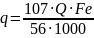 Fe – концентрация железа общего в воде, 4 мг/л;