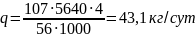 где q – удельная нагрузка осадка с фильтрующим основанием, 6 м3/м2 год;