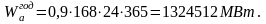 Чтобы оценить данную мощность нужно выделить из неё активную составляющую. Из условий эксплуатации существующей ЛЭП принимается коэффициент пересчёта равный 0,9. Тогда годовая активная энергия определится по формуле, МВт: