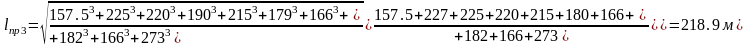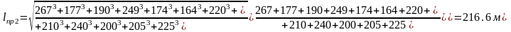 После монтажа анкерного участка в проводах происходит выравнивание напряжения, которое соответствует какому-то условному пролету. Этот пролет называется приведённым, и его длина соответствуют длине среднего промежуточного пролёта, который определяется из выражения (5.24):