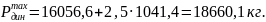 - динамическая максимальная нагрузка колеса на рельс, возникающая за счет колебания кузова на рессорах, кг.