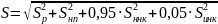 Sинк - среднее квадратическое отклонение динамической нагрузки колеса на рельс от сил инерции необрессоренных масс, возникающих из-за наличия на поверхности катания колес плавных изолированных неровностей, кг.