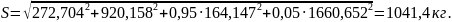 S – среднееквадратическое отклонение динамической вертикальной нагрузки колеса на рельс, кг.