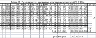 Результаты расчета коэффициентов устойчивости откоса насыпи с контрбанкетом 6 м. приведен в таблице 5.10