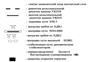 Общая продолжительность «окна» складывается из: интервала времени, необходимого на развертывание работ - tр; времени производства основных работ (укладки пути) –tу; времени необходимого на свертывание работ - tc.