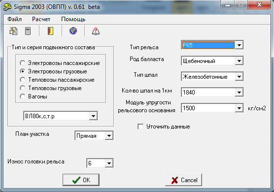 . Применяемый рельс типа Р-65 соответствует условиям эксплуатации для локомотива ВЛ80. Напряжение в кривом участке пути выше, чем в прямом участке пути, по причине того, что рельс испытывает дополнительные нагрузки в продольном профиле и плане пути.