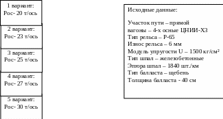 Пример выполнения расчета верхнего строения пути и исходные данные для расчета приведен на рис 2.4
