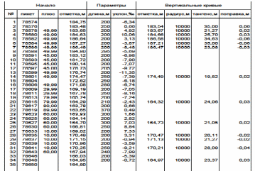 Результаты расчета элементов продольного профиля приведены в табл. 3.2