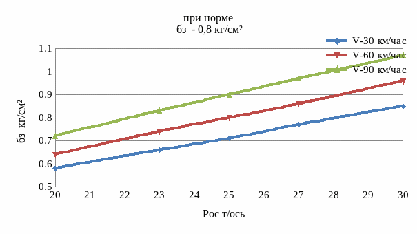 Из графика следует, что при скорости движения 90 км/час и Рос=20 т/ось,
