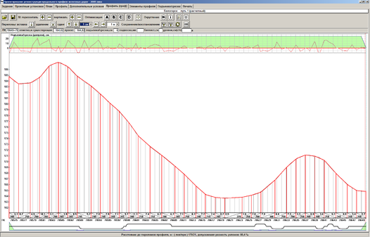 Расчет утрированного продольного профиля выполнен на ПК в программе CORREX. Утрированный продольный профиль приведен на рис. 3.2, 3.3, 3.4 и на плакате.