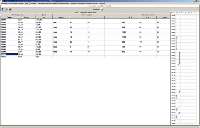 - кривая ПК78626+30,00 - ПК78629+20,00; правая; R- 1001 м.; угол поворота - 12º13'; h – 60 мм, дина переходной L – 65 м.;
