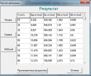 23 т/ось, 25 т/ось, 27 т/ось, 30 т/ось значения напряжений на смятие в прокладках при выбранных скоростях не превышают допускаемые значения, что соответствует условиям эксплуатации.