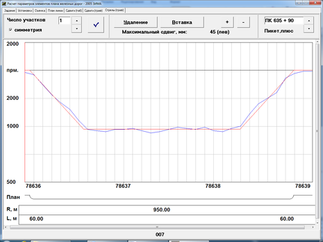Результаты расчета сдвигов для первой кривой км 7863 ПК5-9
