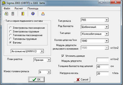 Рис 2.11 Исходные данные для расчета оценки напряжений при проходе грузовых вагонов