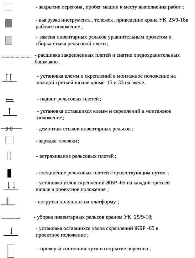 Условные обозначения графика замены инвентарных рельсов рельсовыми плетями: