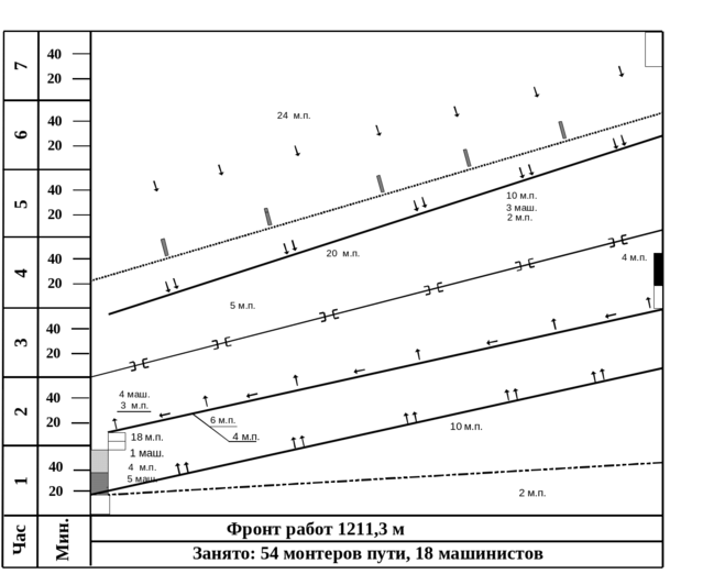 | 5 | Выгрузка с мотвоза в начале и конце фронта работ: |