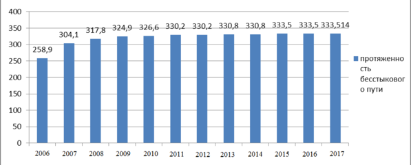По состоянию на 01.01.2017 года протяжение главных путей не изменилось и составляет 368,888 км, из них с рельсами: