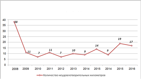 Рисунок 1.6 – Количество неудовлетворительных километров.