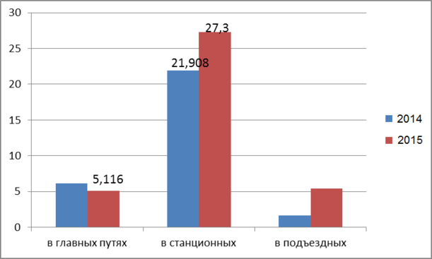 - в станционных путях- 27,3 т. шт. (2013 – 21,908), рост на 5,4 тыс.шт;