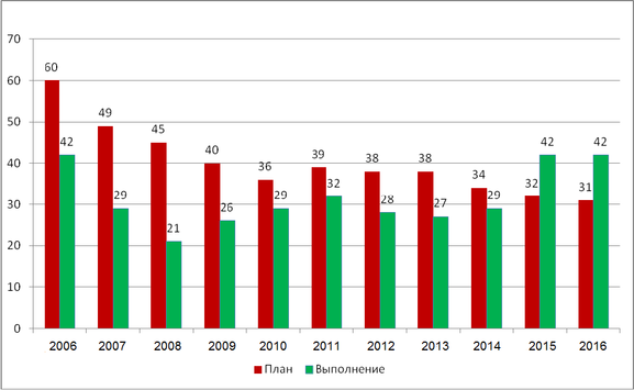 Рисунок 1.5 – Выполнение балловой оценки состояния пути по годам.