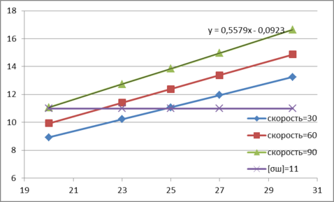 | скорость=30 | 8,92 | 10,22 | 11,08 | 11,95 | 13,25 |