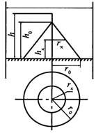 Стандартной зоной защиты одиночного стержневого молниеотвода высотой h является круговой конус высотой h0 < h, вершина которого совпадает с вертикальной осью молниеотвода (рис. 6.1). Габариты зоны определяются двумя параметрами: высотой конуса h0 и радиусом конуса на уровне земли r0.