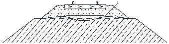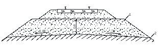 Рис. 6.6 – Разделительный слой из дренирующего грунта при глинистом грунте насыпи тугопластичной консистенции: 1 – дренирующий грунт; 2 – глинистый грунт.
