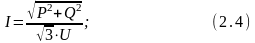 - увеличение до предельно допустимых значений загрузки ЛЭП и подстанций токами полной нагрузки и ограничению пропускной способности ЛЭП и подстанций (ПС) по активной мощности из-за необоснованной загрузки реактивной мощностью. В этом случае ток загрузки определяется по выражению: