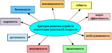 Эффективность применения устройств КРМ во многом зависит от правильного выбора места их установки, адекватного выбора конструкции и параметров самих устройств, а также адаптивного алгоритма управления их мощности в условиях резкопеременного и широкоамплитудного характера изменения нагрузки потребителей. Так как внедрение устройств КРМ на практике все чаще приходится решать не на стадии проектирования системы электроснабжения, а непосредственно в процессе эксплуатации, то на основании анализа литературных источников [3, 7, 9, 10, 18] нами были сформулированы ключевые критерии к устройствам КРМ для рассматриваемых распределительных сетей, представленные на рисунке 2.2.