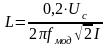 – напряжении сети, равное 400 В; fмод – частота модуляции, равная 250 Гц (5-ая гармоника); I – ток модуляции, равный 0,833 А.