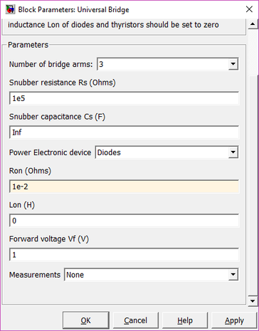 Рисунок 4.4 – Диалоговое окно трехфазного мостового диодного выпрямителя для задания его параметров