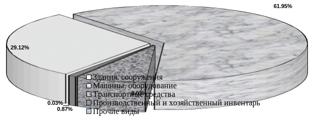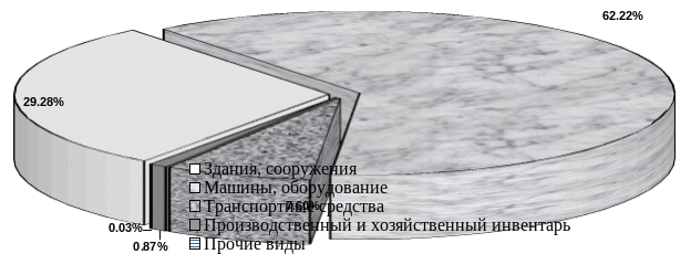 Таким образом, в структуре основных производственных фондов предприятия преобладают машины и оборудование, здания и сооружения. Их общий удельный вес составляет более 91 %, что является закономерным, учитывая сферу деятельности предприятия и наличие в собственности производственных площадей.