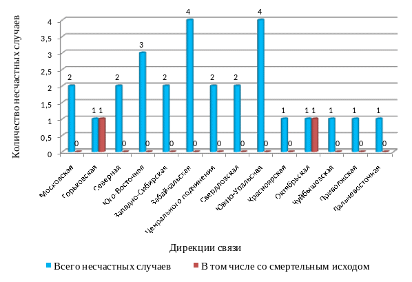 Распределение несчастных случаев со смертельным исходом наблюдается в следующих дирекциях связи: