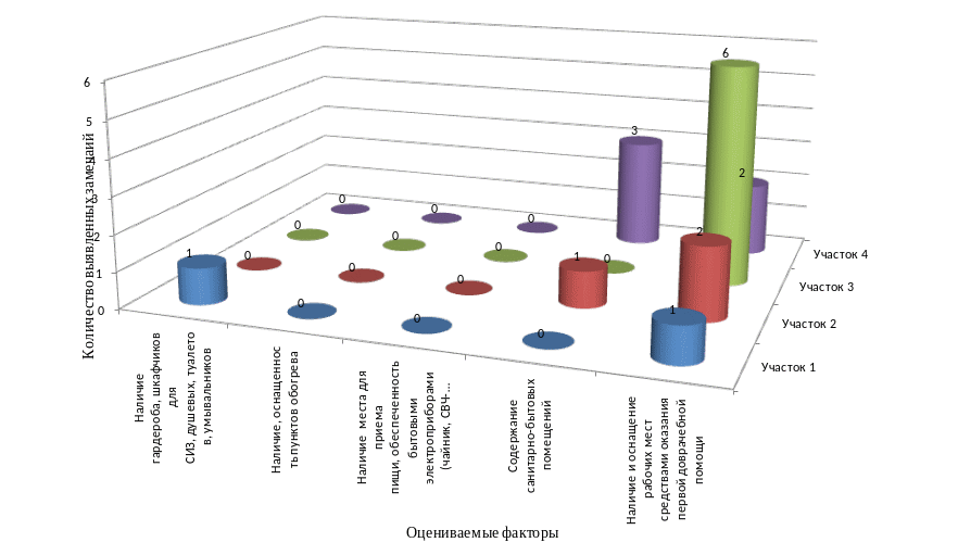 Немало важными вопросами в оценке состояния условий труда являются факторы санитарно-бытового обеспечения: