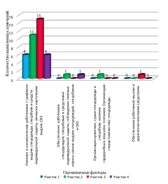 Основными замечаниями здесь являются незаполнение личных карточек выдачи спецодежды или их отсутствие. Это может привести к неполучению работником полагающейся ему спецодежды, что может привести к серьезным последствиям, таким как микротравма, травма или несчастный случай.