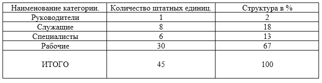 Основной штат сотрудников составляет 45 человек, данные предоставлены в таблице 4.