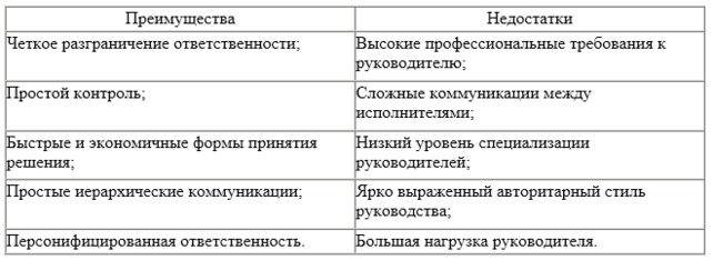 Таблица 3 – Преимущества и недостатки линейной формы организации
