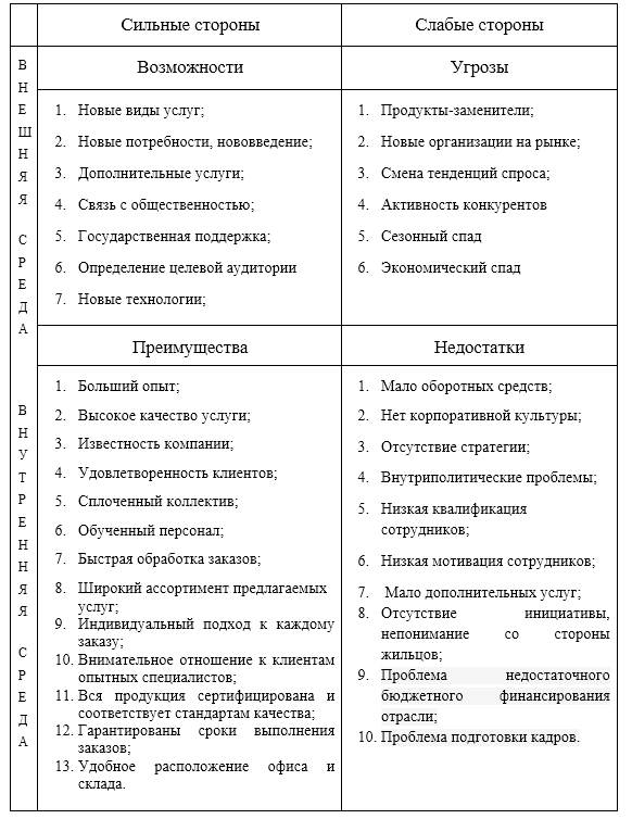SWOT-анализ во всех своих модификациях является наиболее удобным и надежным инструментом стратегического планирования. В таблице 6 предоставлен SWOT-анализ, в котором организация ООО «УЮТ» уделяет самое пристальное внимание.