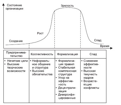 Каждая организация в своей жизни проходит периоды идеи, зарождения, развития, достижения определенных успехов, ослабевания и, наконец, умирания. Независимо от срока жизни каждая организация проживает множество изменений. Важно, чтобы руководство фирмы четко представляло, на каком этапе развития находится организация, и пересматривало стили руководства в соответствии с определенным этапом.