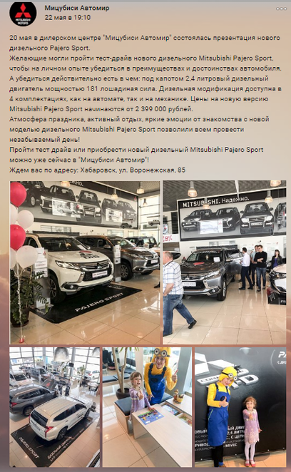 Рисунок 14 — Публикация с мероприятия «Мицубиси Автомир»