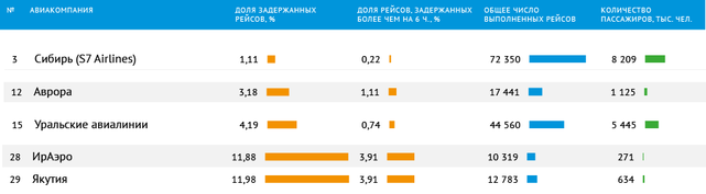 По данным Росавиации был принят во внимание рейтинг пунктуальности авиакомпаний, уровень задержек рейсов (рисунок 11).